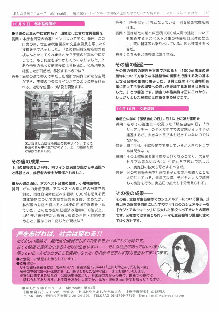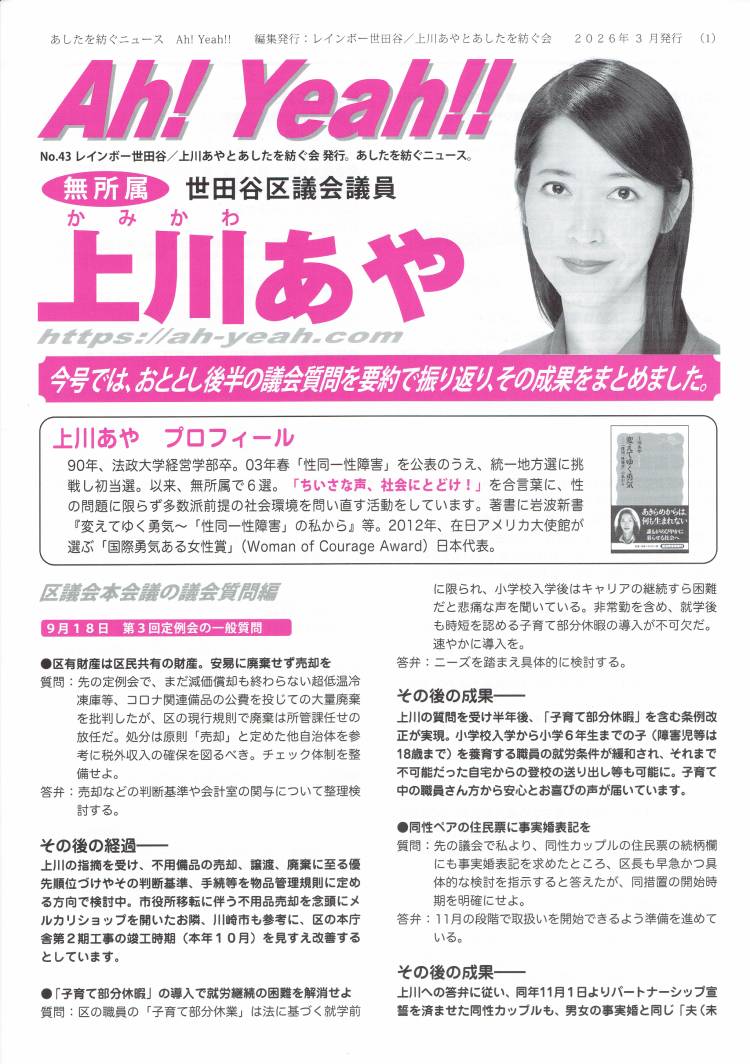 2026年3月25日2026年3月23日 ah_kamikawa あした紡ぐ Ah!Yeah!! ◆画像をクリック又は押して頂くと大きな画像の別ページが開きます。 あしたを紡ぐニュース Ah! Yeah !! 第43号